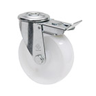 Колеса поворотні нержавіючі "Norma INOX" з отвором і гальмом з поліаміду з підшипником ковзання